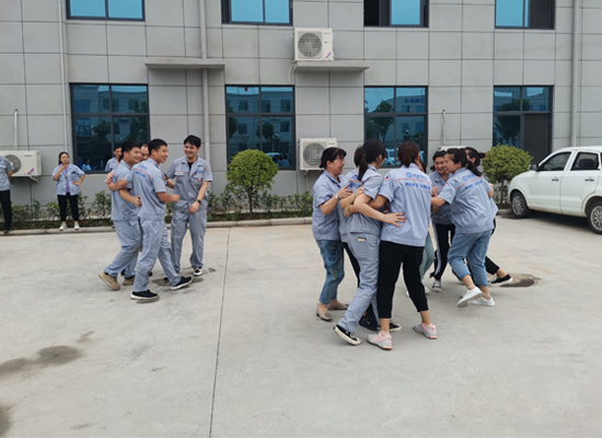 雨后清涼的空氣送走了多日的酷熱,4點全公司員工都放下工作,來到辦公樓前參加端午團建活動?;顒臃譃樗膫€環節:全員參與“愛的抱抱”、分隊參與“十人九足”、拔河比賽、套圈圈。